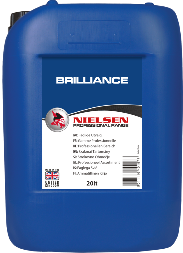 Brilliance is a high quality solvent dressing for tyres containing a blend of high quality silicones providing a lasting weather resistant sheen. Brilliance restores the natural lustre of tyres, providing a long lasting high floss finish. The silicones in the formulation have been selected to reduce over-spray onto paintwork when the vehicle is driven away.