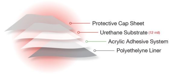 PremiumShield Ultra is a 12mil (0.30mm) urethane film coated with a 1.7mil (0.04mm) clear acrylic pressure sensitive adhesive system (PSA). The film is specifically designed for the surface protection of painted, gel coated or other vulnerable surfaces improving functionality and allowing the conservation of visual appearance.